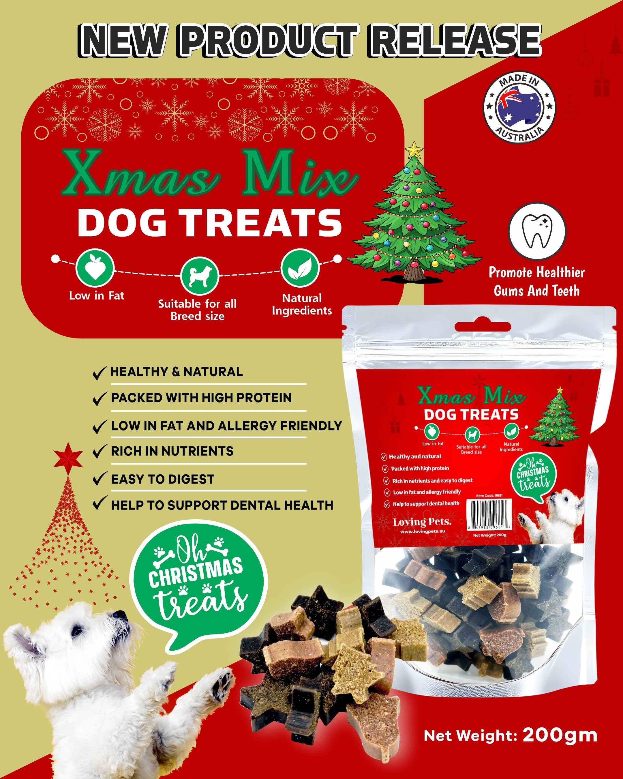 Christmas Mix Dog Treats - Chicken, Beef and Kangaroo in Xmas Tree, Stars & Bell Shapes