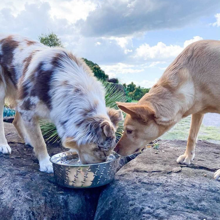The side walls are stamped with a signature diamond plate design giving these bowls a rugged look.