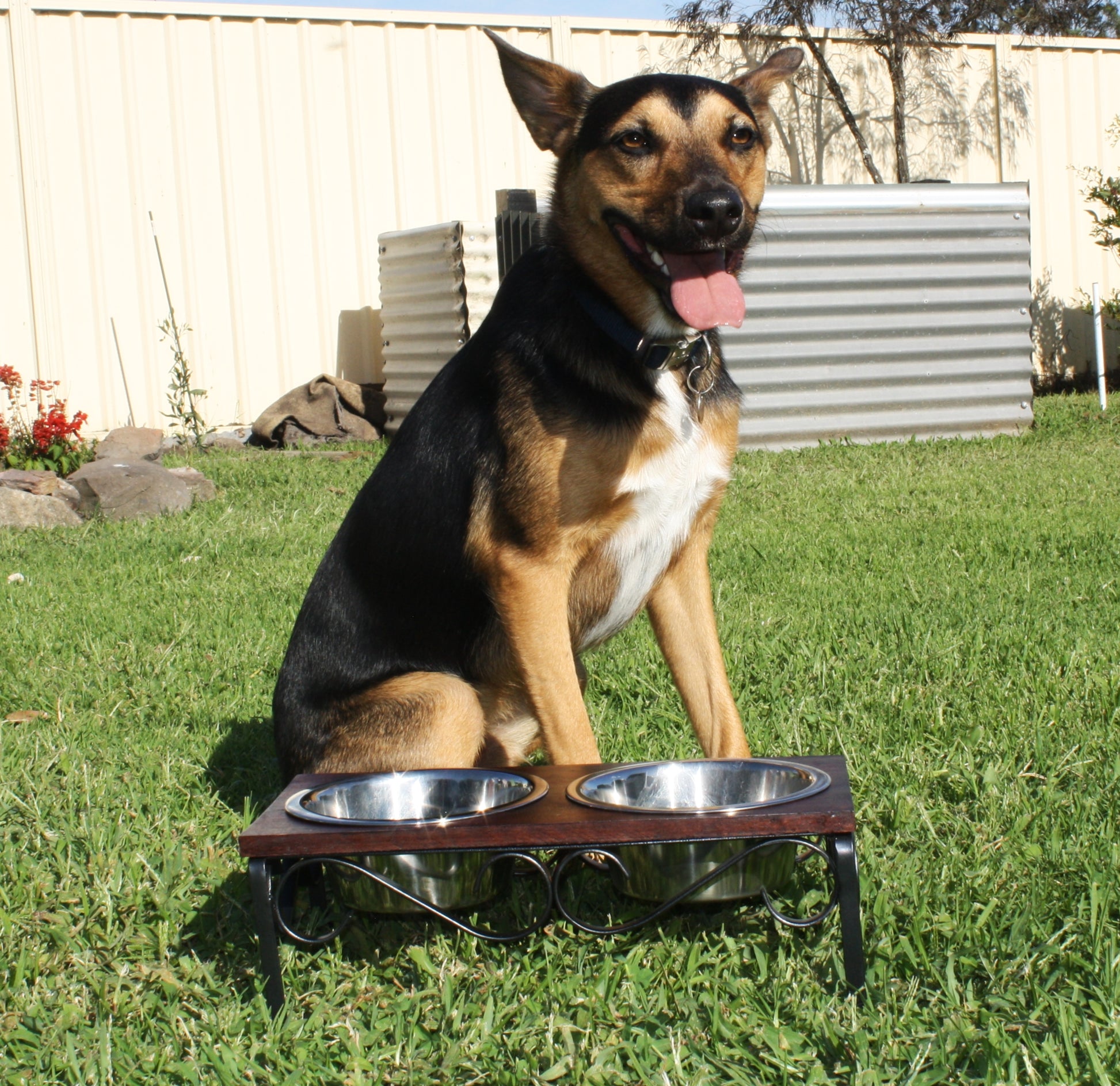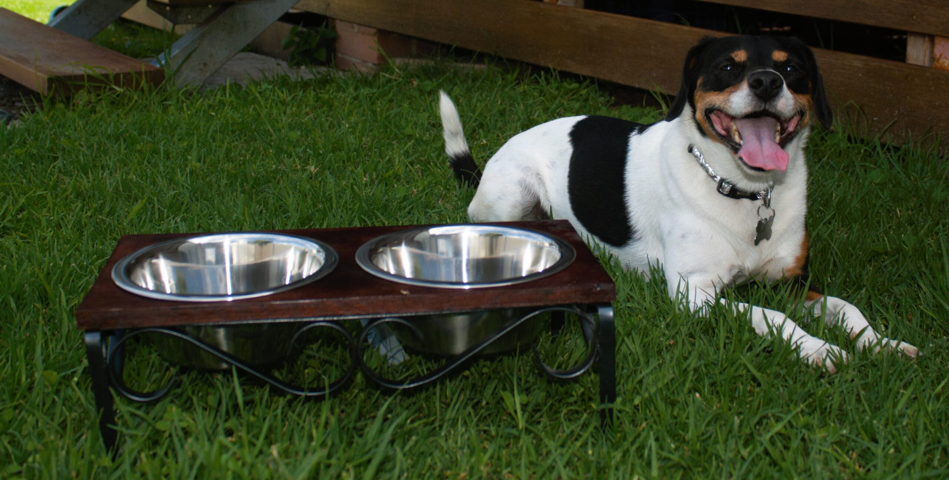 The handcrafted Layton Cherry Top Raised Diner features a black powder coated wrought iron base with a rich cherry stained wood top. All wood surfaces have been protected with a safe and durable, water-resistant coating. The Ruff N' Tuff stainless steel bowl inserts are veterinarian recommended because they resist bacteria. The bowls are also removable for easy cleaning and are dishwasher safe.