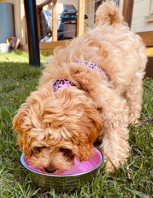 The glazed overstain effect highlights the ribbed walls and embossed paw in the bottom. The integrated rubber base makes them skid and noise-free and of course, they are top-rack dishwasher safe.