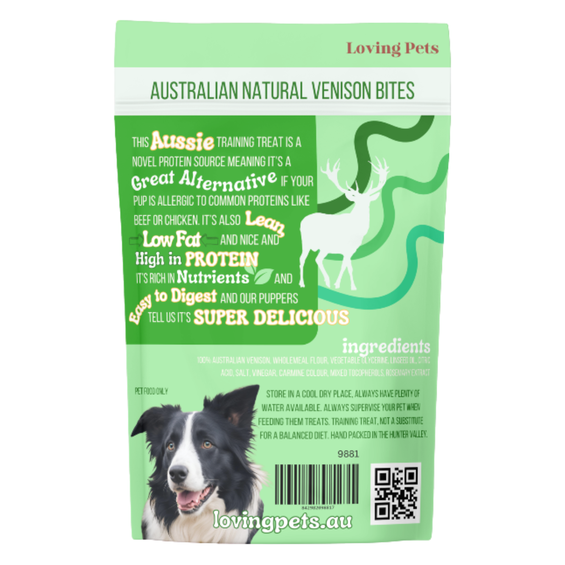 Australian Venison is a tasty treat for your dog. High in protein, B vitamins and a good source of Omega 3 fatty acids. Venison is a lean meat so very low in fat which means it's great for doggies on a diet.