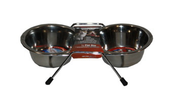 Ruff N' Tuff® Double Diner stainless steel raised dog dishes are the perfect elevated dog diners. Both the frames and bowls are made of veterinarian recommended stainless steel. The frames feature removable rubber feet to prevent skidding, spilling and reduce noise. Because they are stainless they are durable, healthy, easy to clean, dishwasher safe, and bacteria resistant. Ruff N' Tuff® Double Diners are also one of the most affordable raised dog dishes available.